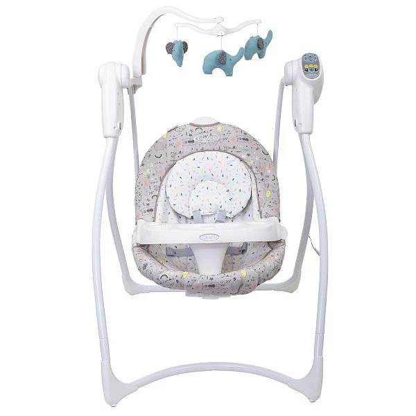 Die Graco Lovin Hug Schaukel verfügt über eine vierfach verstellbare Rückenlehne und dank der abnehmbaren Kopfpolsterung können bereits Neugeborene in den Genuss dieser Babywippe kommen. Die Schaukelbewegung helfen beim Entspannen und die Melodien sowie Naturgeräusche tragen dazu bei. Das angebrachte Mobile bietet Unterhaltung im Babyalltag.