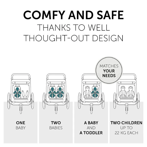 Ob neue oder wachsende Familie, mit dem Baby Lounger genießt ihr die maximale Nutzungsdauer des Dryk Duo Fahrradanhängers und Buggys. Denn durch den Einhang ist er schon für Babys ab einem Monat nutzbar.