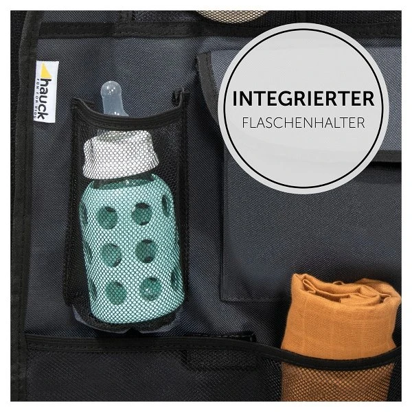 Die Tasche lässt sich einfach befestigen und bietet genügend Platz für alle Dinge, die unterwegs benötigt werden. Vom Getränkehalter bis hin zur Tasche für Feuchttücher hat der Cover Me Deluxe genug individuellen Stauraum und alles ist immer griffbereit. Zusammenfaltbar – für die platzsparende Aufbewahrung im Fahrzeug.