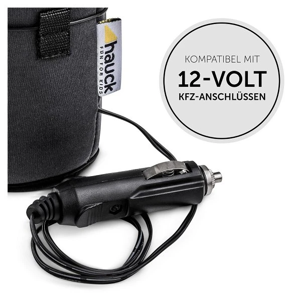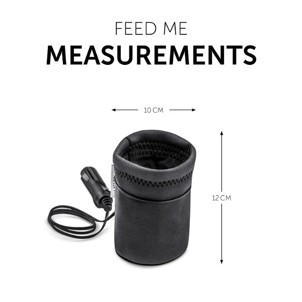 Das Material passt sich der Form jeder beliebigen Flasche an und erwärmt so den Inhalt schnell und gleichmäßig. Der Feed Me passt aufgrund seiner kleinen Bauform in jeden Auto-Getränkehalter oder kann mittels der Hängevorrichtung auch am Armaturenbrett angebracht werden. Der 12-Volt-Anschluss verfügt über eine Power-Anzeige sowie einen integrierten Überhitzungsschutz. Dabei erwärmt sich die Nahrung um bis zu 50% schneller als bei herkömmlichen Fläschchenwärmern. Anschluss an jeden 12-Volt-Zigarettenanzünder.