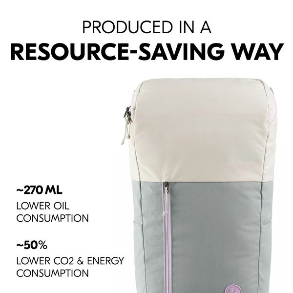 Möchtest du einen nachhaltigen Rucksack, der ressourcenschonend hergestellt ist und mit dem du einen Beitrag zum Umweltschutz leistest? Der Pack N Walk Rucksack besteht hauptsächlich aus 100 % recyceltem Polyester, was etwa 35 recycelten PET-Flaschen à 0,5 Liter entspricht. Durch den Recycling-Prozess verbrauchen wir in der Herstellung deutlich weniger Wasser und Rohöl und produzieren 50 % weniger CO2 und Energie – ein großer Beitrag zum Umweltschutz.