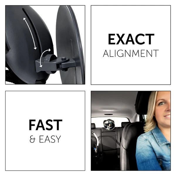 Mit diesem Spiegel für die Kopfstütze der Rücksitzbank Ihres Fahrzeuges haben Sie Ihr Kind in der Babyliegeschale oder einem Reboardsitz immer im Auge.