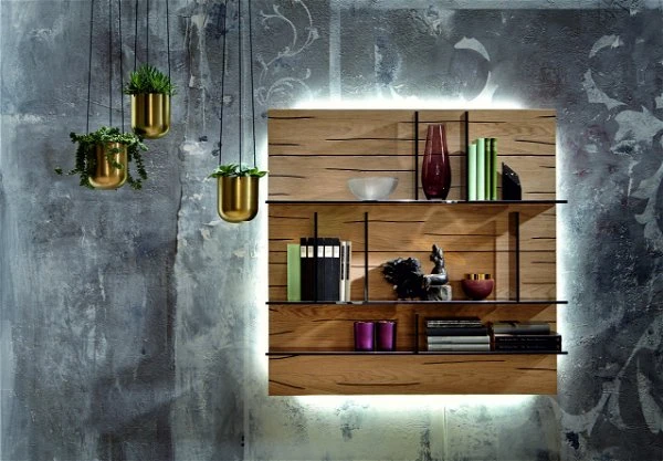 Für das hülsta Gentis 6 Raster Hängeregal ist die Installation einer indirekten Beleuchtung möglich. Gesteuert wird die Beleuchtung über einen Trittschalter, Energieeffizienzklasse G. 12 V.