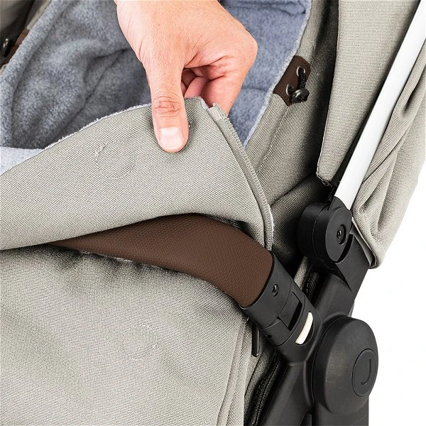 Einfach den Fußsack am Sitz deines Joolz Kinderwagens befestigen, und du bist bereit für Wind und Wetter.