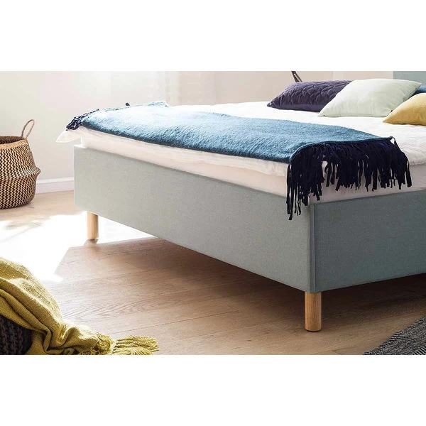 Meise Möbel Amelie Polsterbett – eisblau mit Holzfuß eichefarbig