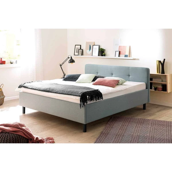 Meise Möbel Amelie Polsterbett – eisblau mit Holzfuß graphit