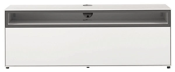 Das now! by hülsta easy Media-Lowboard verfügt über 1 offenes Fach, 1 Klappe und eine Öffnung für Kabelführungsmöglichkeit in der Rückwand und Abdeckplatte. Lieferung inkl. 1,5 cm hohen Stellfüßen. Der Rahmen ist in Lack-hellgrau gehalten.