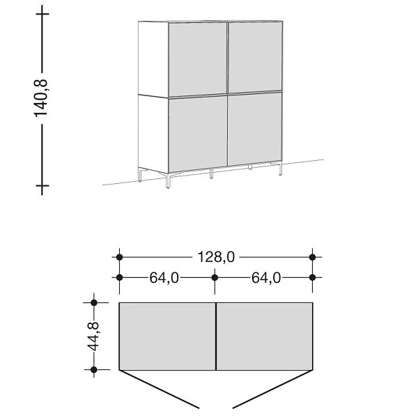 Maße: 64 x 128 x 44,8 cm (H x B x T)