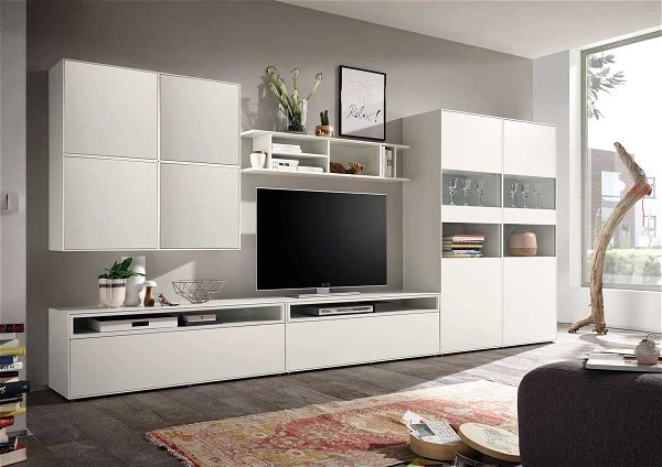 Die now! by hülsta easy Wohnwand mit Akzenten in Lack-reinweiß besteht aus 9 Elementen und bietet unter anderem Platz für Fernseher und diverse Dekoartikel. Mit der now! by hülsta easy Serie legen Sie die Basis für besonders flexible Wohnwelten, die verschiedenen Einzelmöbel lassen sich einfach zusammenschieben und immer wieder neu arrangieren.