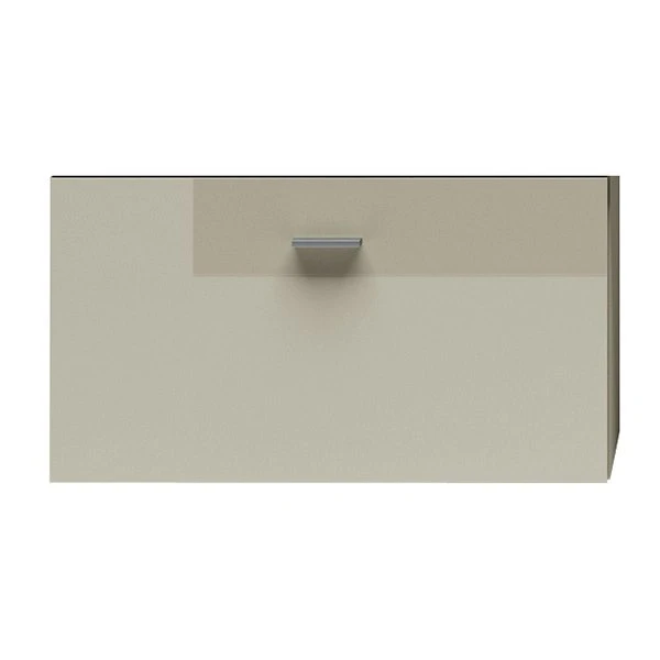 Der Korpus dieses Hängebaukasten ist in Lack-seidengrau gehalten. Die Front ist in Lack-Hochglanz-seidengrau.