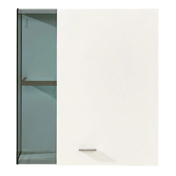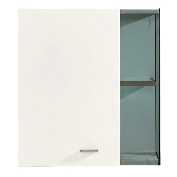 Der Korpus dieses Hängebaukasten ist in Lack-weiß gehalten. Die Front ist in Lack-Hochglanz-weiß.