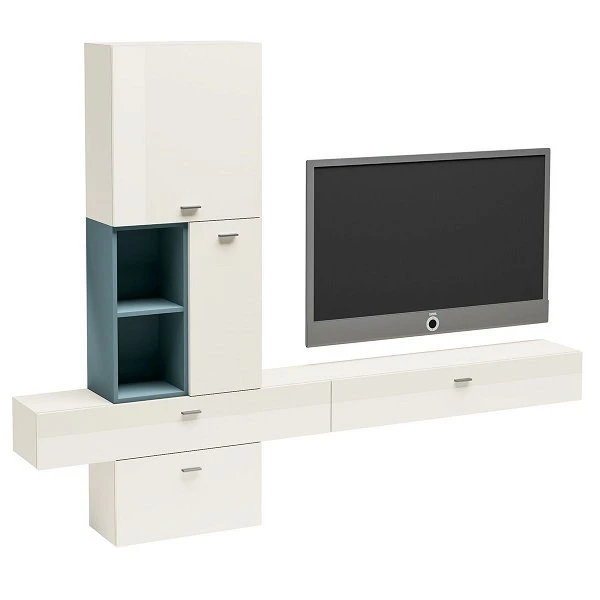 now! no.14 by hülsta Kombination 11 219x280x34 Lack-weiß/Lack-taubenblau/Lack-Hochglanz-weiß