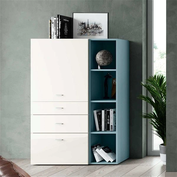 now! no.14 by hülsta Kombination 13 155x105x42 Lack-weiß/Lack-taubenblau/Lack-Hochglanz-weiß