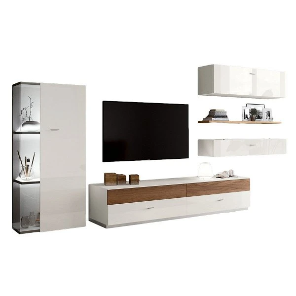 now! no.14 by hülsta Kombination 15 191x390x52 Kernnussbaum/Lack-weiß/Lack-Hochglanz-weiß