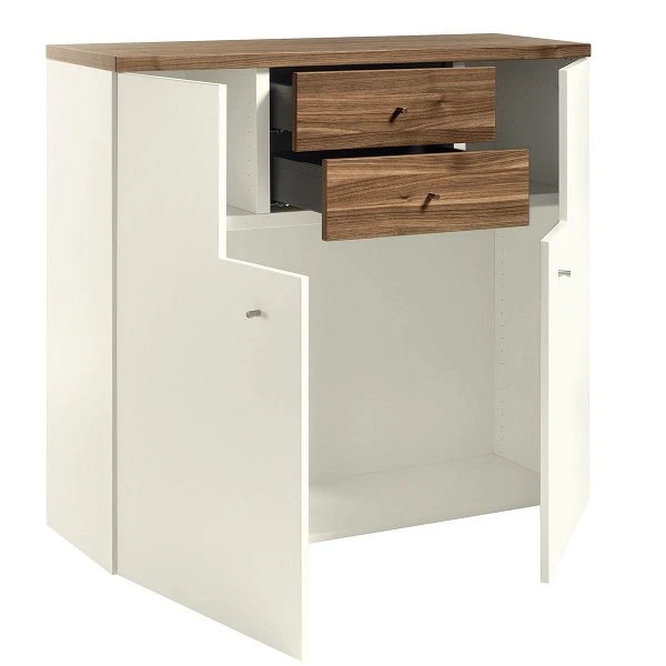 now! time by hülsta Highboard 2 Winkeltüren Kernnussbaum/Lack-weiß