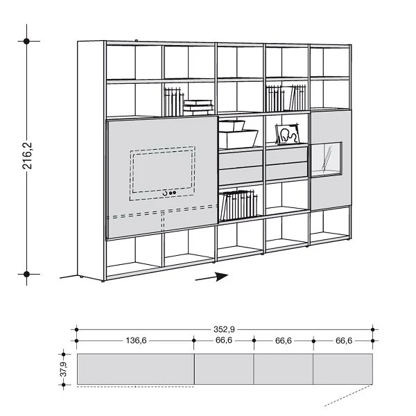 Gesamt: 216,2 x 352,9 x 37,9 cm (H x B x T)
