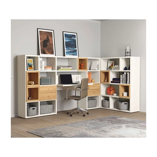 - Regal mit 11 offenen Fächern, 4 Schubkästen und 1 Schreibplatz