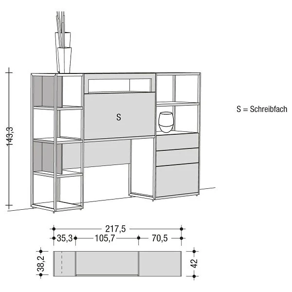 Gesamt: 143,3 x 217,5 x 42,0 cm (H x B x T)