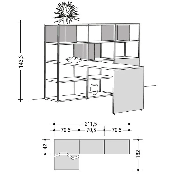 Gesamt: 143,3 x 211,5 x 182 cm (H x B x T)
