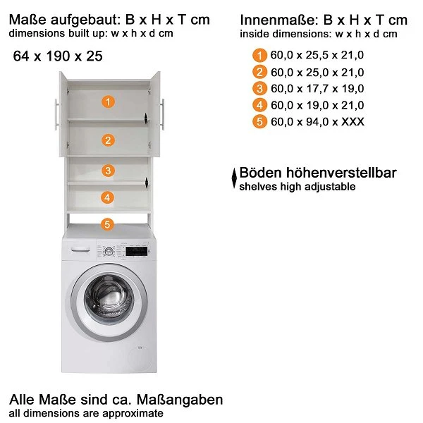 - Maße B/H/T: 64 / 190 / 25 cm