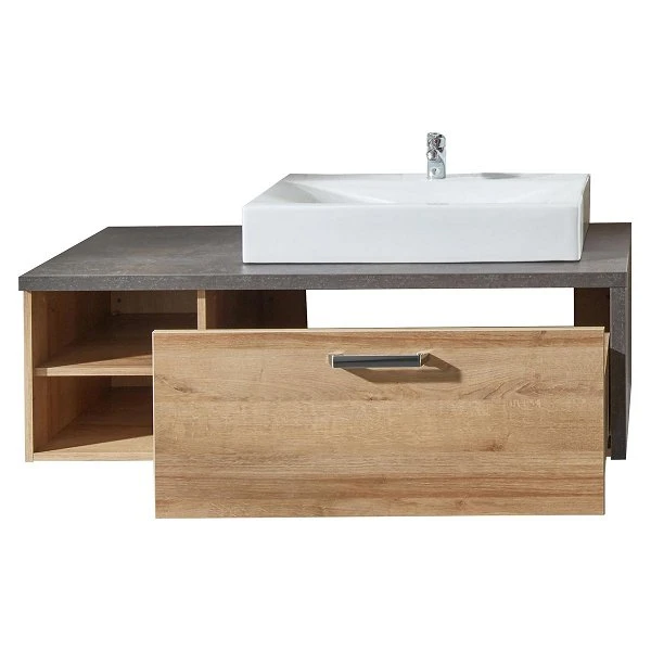 trendteam Bay Waschbeckenunterschrank inkl. Aufsatzwaschbecken Eiche Riviera / Beton