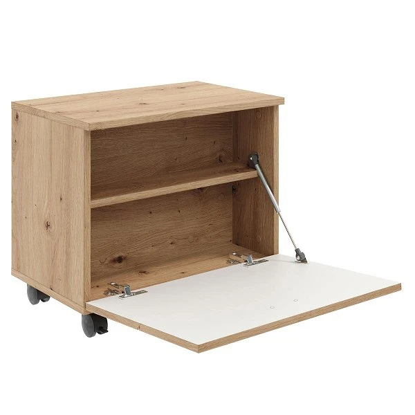 Der trendteam Geo Sitzcontainer ist eine stylishe Lösung für alle Einrichtungsstile. Die verwendete Dekorfolie in Verbindung mit Melamin verleiht der Oberfläche Beständigkeit. Der Korpus im Artisan Eiche Dekor schafft einen modernen Style, der sich harmonisch in den Raum integriert. Chromfarbene Griffe mit mattem Finish ordnen sich farblich optimal in das Dekor ein.