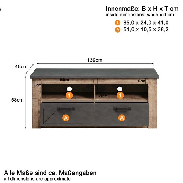 trendteam Georgia TV-Unterteil Tabak Eiche/Matera