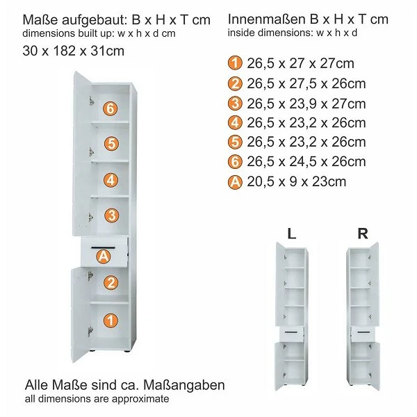 - Maße B/H/T: 30 x 182 x 31 cm
