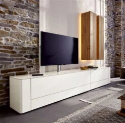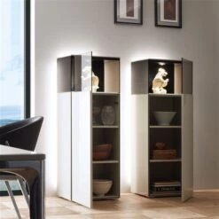Hülsta Gentis 12R Vitrine – Lack-Ausführung 52,8 Cm – Akzent Naturstamm – 1 Tür M. Glasfüllung